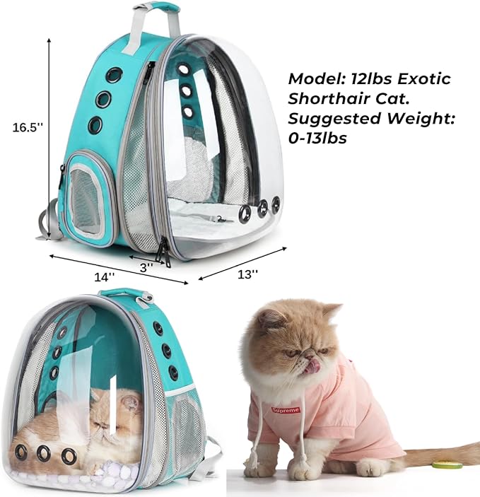 • 🐱【Expandable for More Space】Our cat backpack carrier can easily be expanded to provide more room for larger pets with its bubble design and expandable bottom pad.