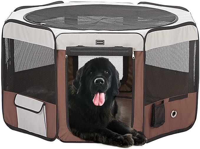 DONORO 29" Portable Pet Play Pens for Small Dog/Cat/Rabbit/Chicks, Playpen Indoor/Outdoor with Carring Case, Removable Zipper Top and Bottom