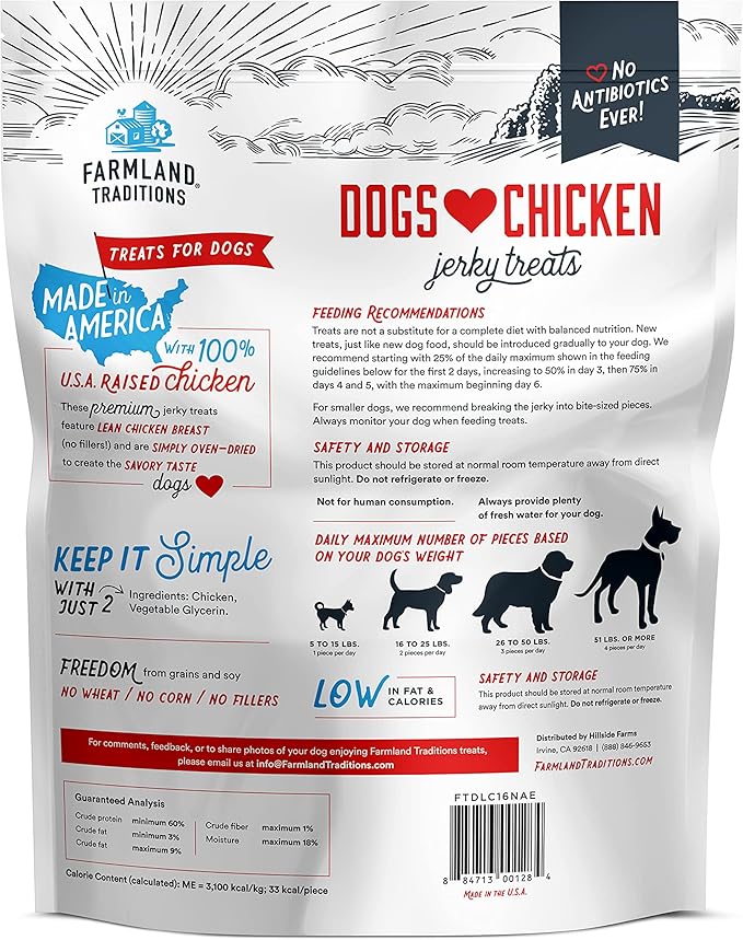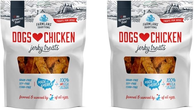Farmland Traditions Dogs Love Chicken Premium Two Ingredients Jerky Treats for Dogs (2 Bags x 1 lb. Each No Antibiotics Ever USA Raised Chicken)