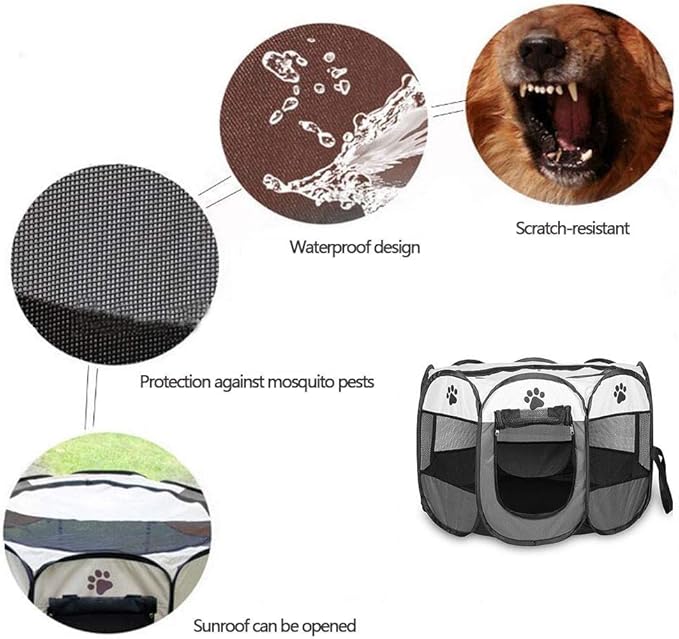 • Premium Quality: Made of durable water-resistant material, 8-Panel design with protected seams and reinforced corners. Zippered door provides easy in/out access for your pet. Keep your pet safely inside everywhere