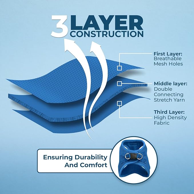 • ALL WEATHER MESH: Made with a soft, breathable air mesh, this lightweight pet harness is perfect for walks all year round.