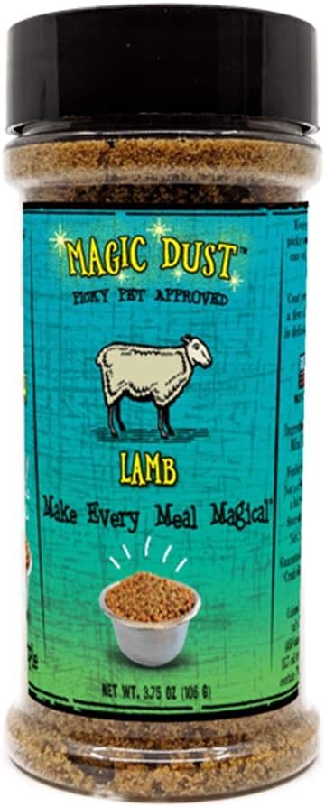 • Lamb Magic Dust: Give your dog or cat the flavor they crave with our Lamb Magic Dust. With minimal ingredients and a delicious lamb flavor, this simple solution breathes new life into mealtime. Available in 3.5 ounce and 8 ounce bottles to suit your needs.