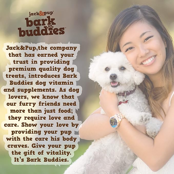 • Guarantee - Jack & Pup, known nationwide for providing quality treats to our pups, brings a line of supplements, including puppy probiotic support for dogs. Our dogs need good nutrition in order to thrive. Bark Buddies are made with the same superior quality standards. Dog vitamins and supplements you can trust.