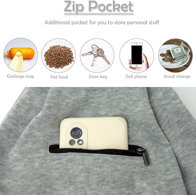 • [Zip Pocket]Additional front zip pocket to store your personal belongins such as treats,poo bags,wallet,cell phone and keys ect.In addition, the packaging comes with a stylish design, so it is also recommended as a gift.