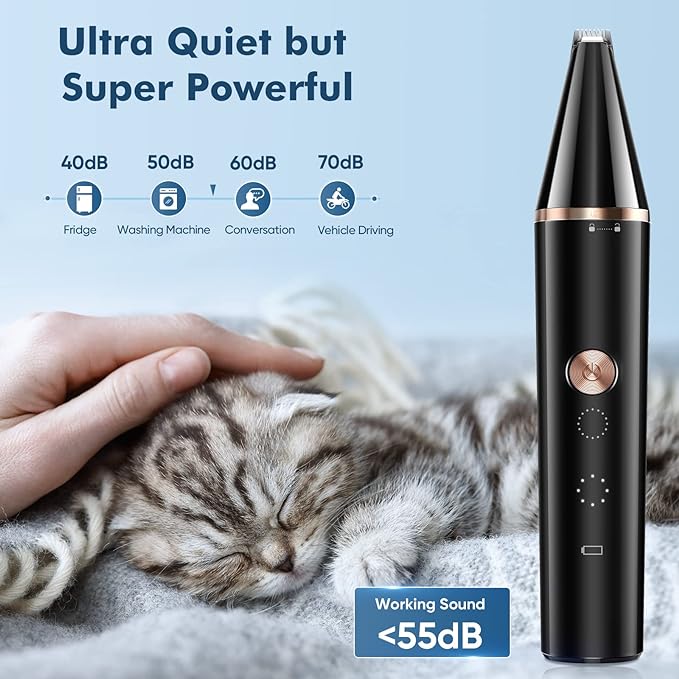 • 🐱 Quiet and Low Vibration Design. The cat clipper's noise is about 60 dB, let your pet enjoy comfortable experience during the grooming process, without causing him any discomfort.