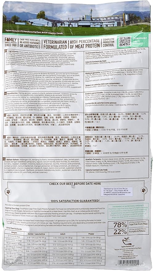 Firstmate, Limited Ingredient Cage-Free Duck Meal & Pumpkin Formula Dry Dog Food, 5 lb