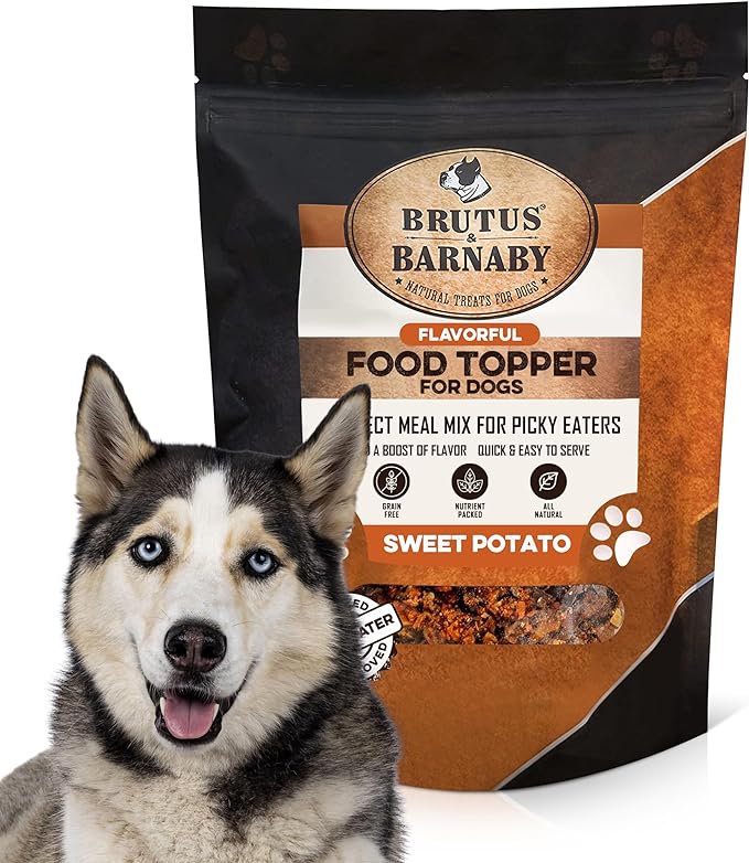 BRUTUS & BARNABY Dog Food Toppers for Picky Eaters - All Natural, Vegan Sweet Potato Kibble Topper, Delicious Meal Toppers for Dogs, Nutrient Packed Dog Food Topper with Single Raw Ingredient