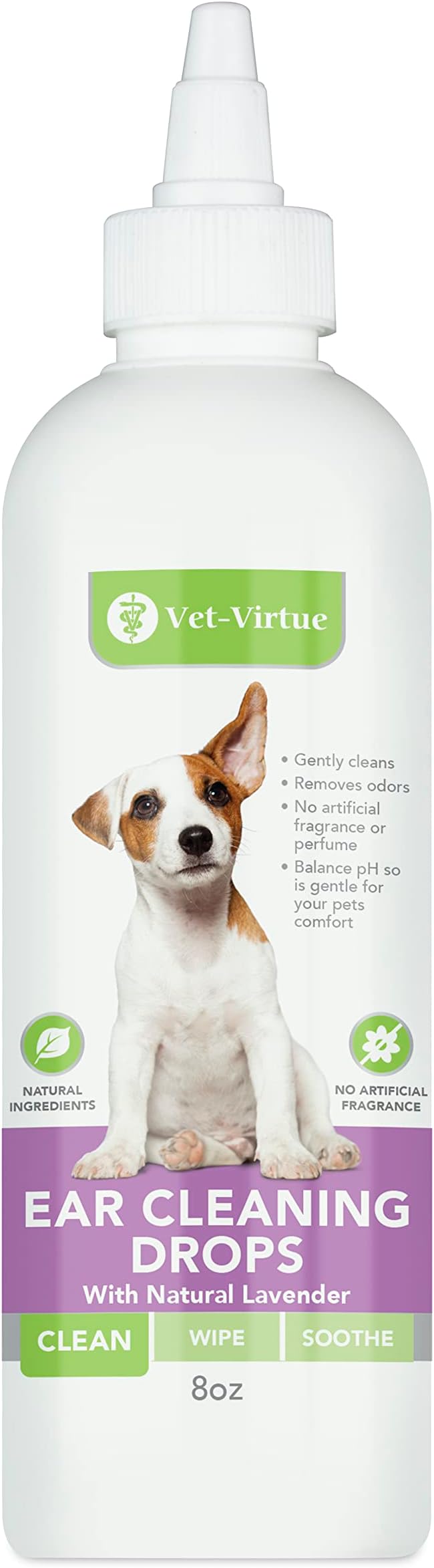 • Effective Dog Ear Cleaner - Our dog ear cleaner is proven to help clean dirt and debris and wax build up from your dogs ears as well as helps provide relief from itching, scratching, and foul odors, due to its cleaning properties. Used with our Vet-Virtue Dog Ear Wipes to wipe up all the gunk for a complete dog ear cleaning kit