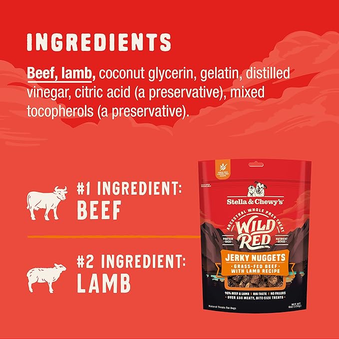 • Treats Your Dog Will Go Wild For! Our Wild Red Jerky Nuggets are incredibly tender and tasty — and just 4 calories each!