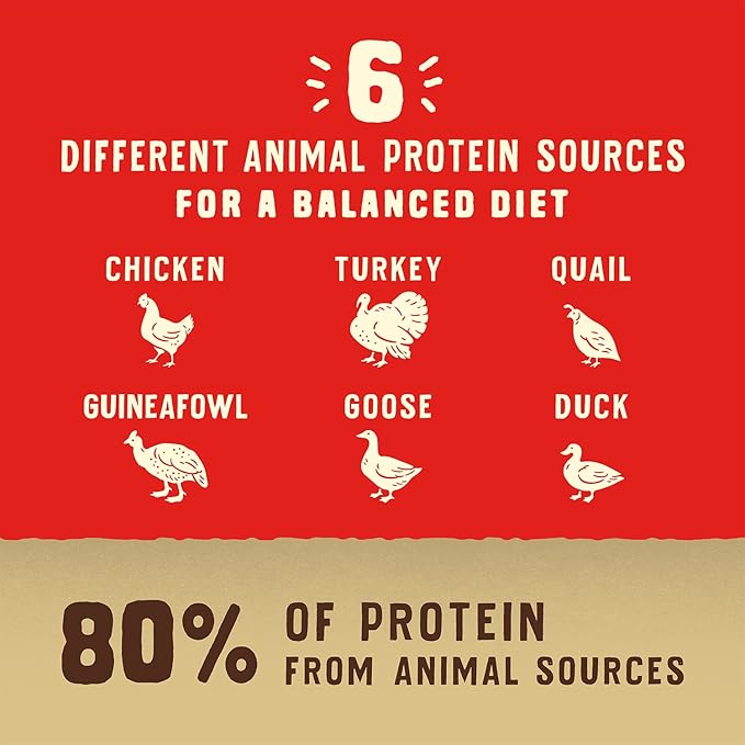 • Feed Your Dog's Wild Side! Our Prairie Recipe includes six animal protein sources: chicken, turkey, quail, guineafowl, goose and duck
