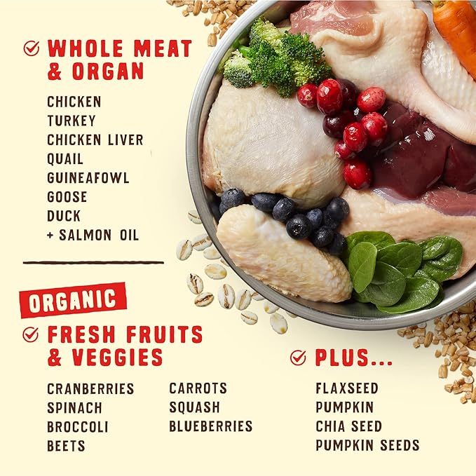 • Whole Prey Ingredients: Feeding your pet a diet similar to what their ancestors enjoyed in the wild helps your pet thrive; 80% of the recipe’s protein comes from animal muscle meat, organ meat and cartilage
