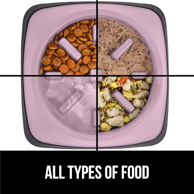 • ALL FOOD TYPES: no matter what food your pet’s diet consists of, the bowl will work to help slow down their eating; the bowl can be used with wet food, dry food, fresh food, and even water or ice; no matter what type of food you use, the bowl is dishwasher safe for an easy clean; bowl is made from safe food grade materials