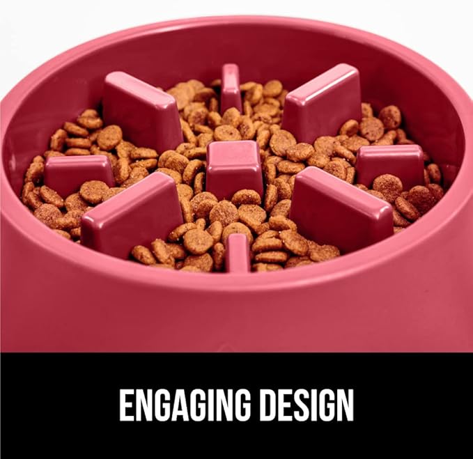 Gorilla Grip Slow Feeder Dog and Cat Bowls, Interactive Puzzle Toy for Dogs and Cats Food Training, Keeps Pets Busy and Prevents Puppy Overeating, Large, Small Breeds, 100% BPA Free, 4 Cup Red