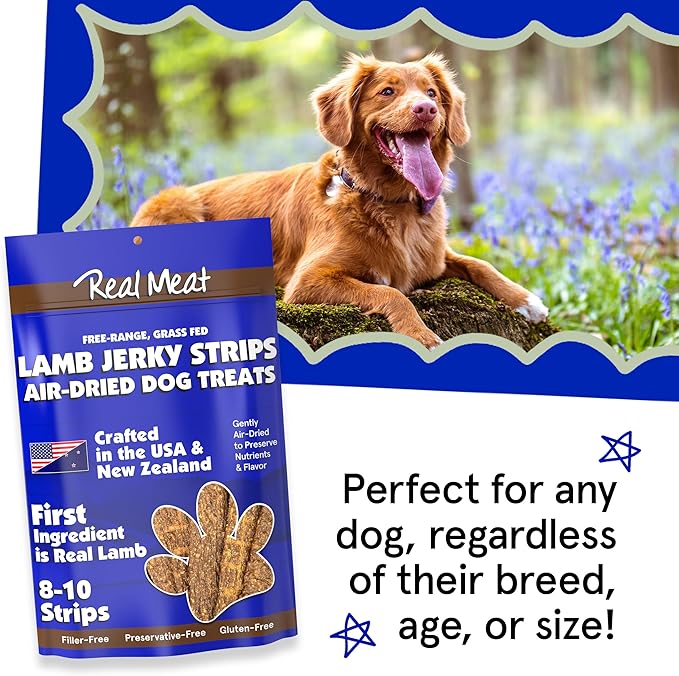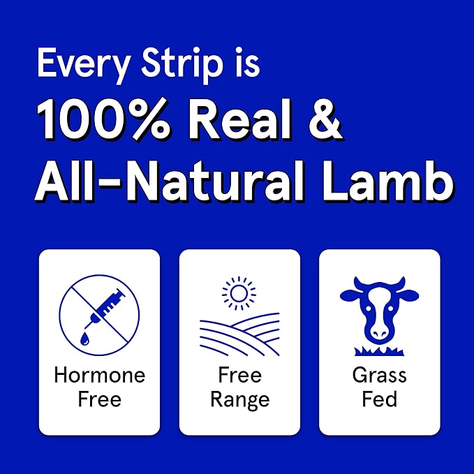• MADE WITH 95% HUMAN GRADE LAMB - 95% of these 7-inch strips of air dried natural dog jerky treats contain real human grade lamb! This premium high-protein real meat lamb jerky for dogs will have your pup's tail wagging nonstop! Not to mention, their soft, chewy, and moist texture, they are perfect for dogs of any age or size