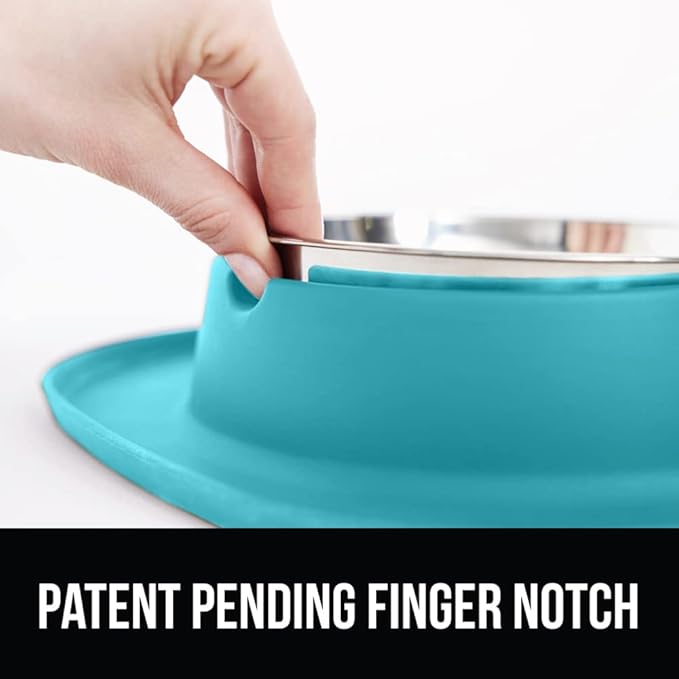 Gorilla Grip 100% Waterproof BPA Free Cat and Dog Bowls Silicone Feeding Mat Set, Stainless Steel Bowl Slip Resistant Raised Edges, Catch Water, Food Mess, No Spills, Pet Accessories, 3 Cup, Turquoise