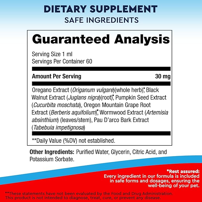 • ✅ Easy to use: just mix the drops (weight by weight) into your cat's or dog's food or water. Better than tape pills or tablets, tabs. IMPORTANT: Every ingredient in our formula is included in safe forms and dosages, ensuring the well-being of your pet.
