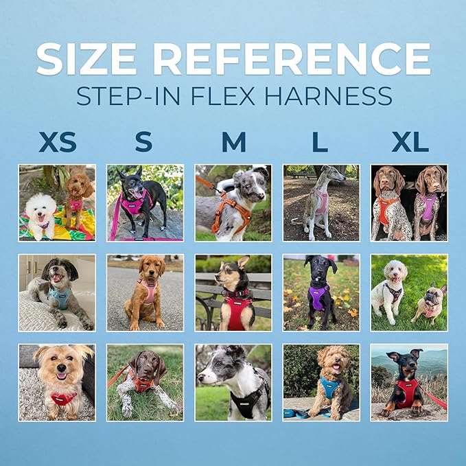 • PERSONALIZED FIT Adjust the neck and chest straps on the Step-In Flex to get the perfect fit for your pet