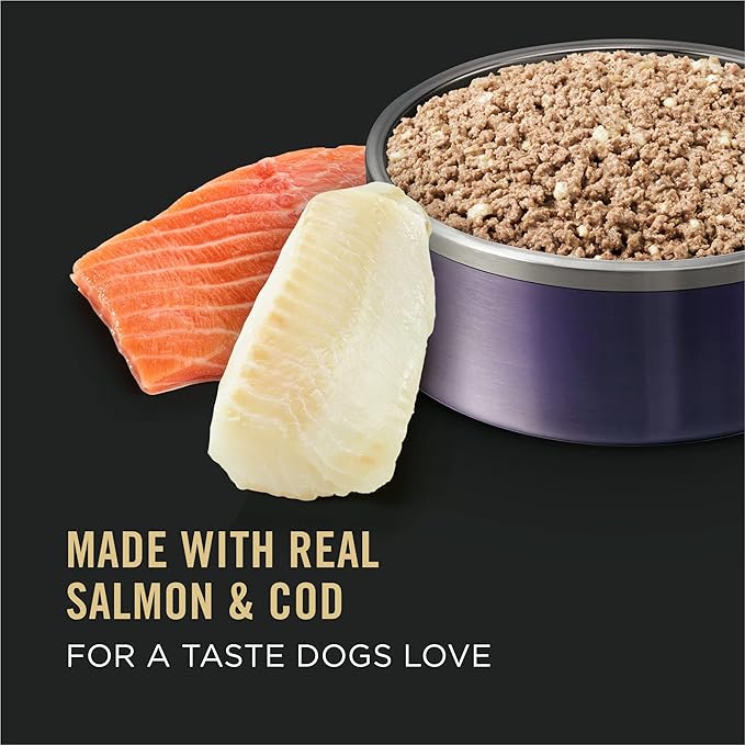 • Active dog food formula made with real salmon and cod