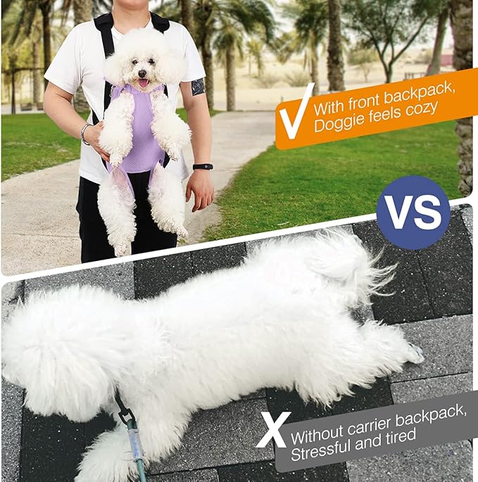 • 🐶【Two Ways of Wearing】: A hands-free pet carrier can be worn on your front side or your backside if you like, it keeps you closer and increases pet's sense of security when you carry your cat or dog around. Meanwhile, the thickened sponge pad helps to relieve the burden of your shoulder.