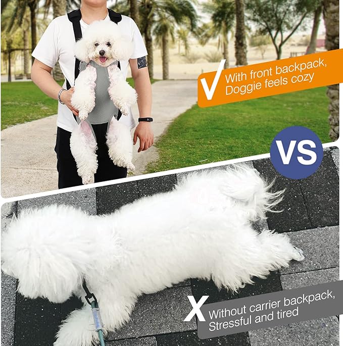 • 🐶【Considerate Detail-oriented Design】: Legs-out and tail-out design keep your pet safe and comfortable; Hook and loop, zipper and elastic openings allow you to fit your dog inside comfortably; Quick Release Buckles on the end of straps ensure quick installation with just one hand.