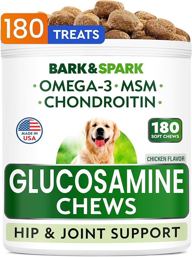 Bark&Spark Glucosamine Chondroitin Dog Hip & Joint Supplement - Joint Pain Relief - Hip & Joint Chews - Joint Support Large Small Breed - Senior Doggie Vitamin Pill Joint Health (180 Treats - Chicken)
