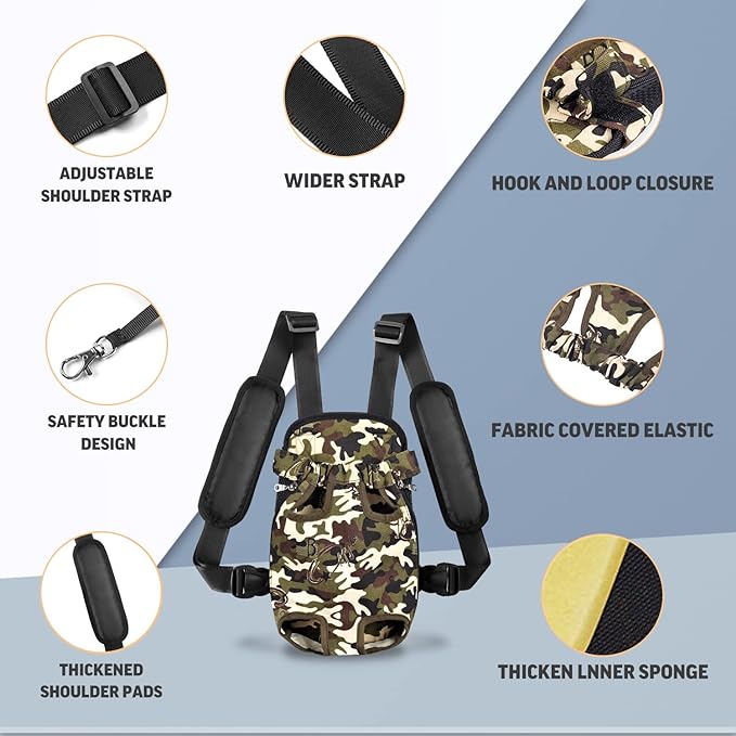 YUDODO Pet Dog Carrier Backpack Adjustable Dog Front Carrier, Legs Out Easy-Fit Dog Travel Backpack Carrier for Hiking Camping for Small Medium Dogs Cats and Rabbits (Medium), Camouflage Green
