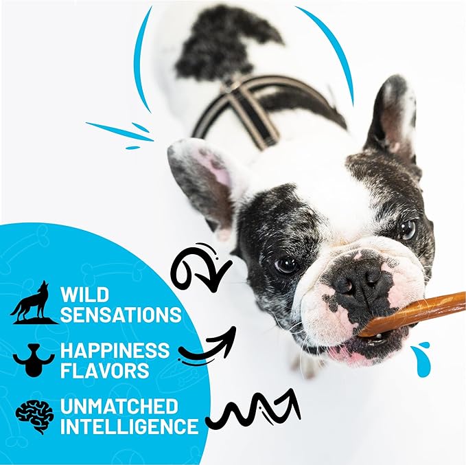 • DENTAL HEALTH 🦷: These fresh and tasty sticks not only satisfy your dog’s love for chewing, but also help reduce plaque and tartar. Bully Sticks stimulate the jaw and promote dental health; an excellent addition to your dog’s oral hygiene routine. They also buildup healthy gums and cleaner teeth