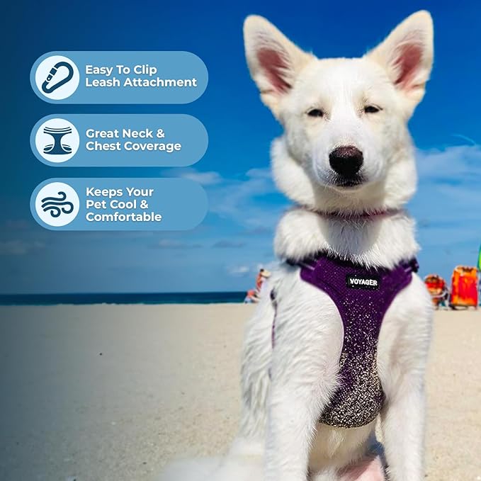 Best Pet Supplies Voyager Adjustable Dog Harness with Reflective Stripes for Walking, Jogging, Heavy-Duty Full Body No Pull Vest with Leash D-Ring, Breathable All-Weather - Harness (Purple), S