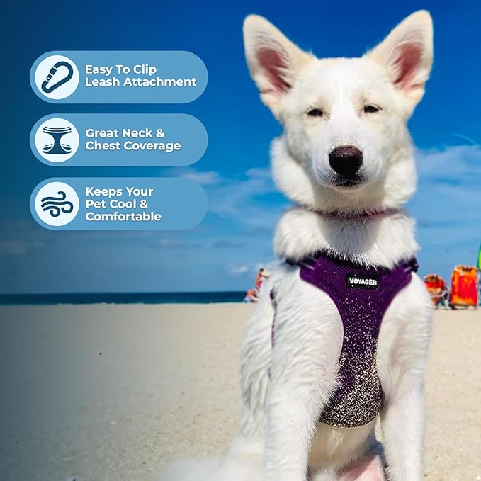 Best Pet Supplies Voyager Adjustable Dog Harness with Reflective Stripes for Walking, Jogging, Heavy-Duty Full Body No Pull Vest with Leash D-Ring, Breathable All-Weather - Harness (Purple), XL