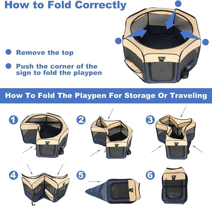 • 『PORTABLE & LIGHTWEIGHT』- The pet playpen can quickly open to use from folded storage bag and fold back flat when not in use in seconds, no assembly required. Portable and lightweight design makes the play pen suitable use for outdoors, indoors, traveling, camping, etc.