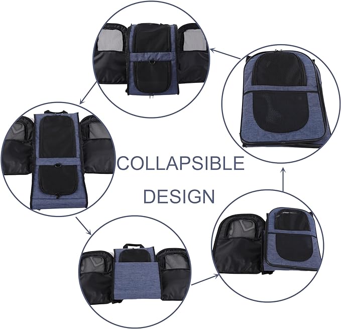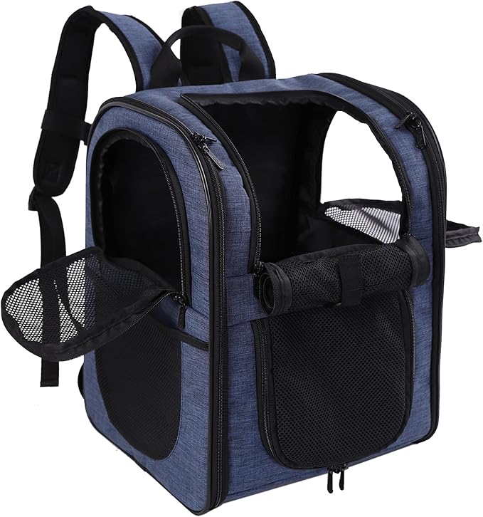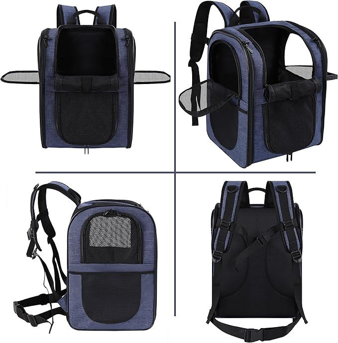 • BETTER CONSTUCTION-Well ventilated design for optimal airflow, two-way entry for easy access, top mesh window for more headroom and visibility, and thick, soft fleece bedding for your pet resting and relaxing. This backpack is firmly structured, providing ample room for your pet to move around.