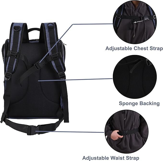 • COMFORTABLE AND CONVENIENCE – The back and shoulder straps are equipped with extra thick padding for more comfort during long trips. This backpack comes with chest buckles and waist buckles to give you extra support.