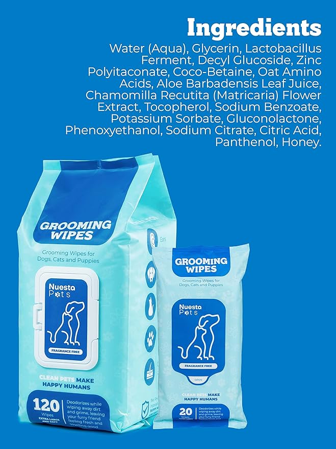 • Versatile & Convenient: Nuesta Pet Wipes are easy to use and perfect for cleaning paws, ears, butts, & face in dogs, cats, and puppies. Keep them handy for quick clean-ups after walks, hikes, or play