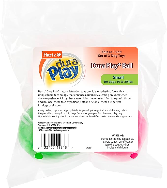 Hartz Dura Play Bacon Scented Squeak Ball Dog Toy for Small Breeds, 3 Pack