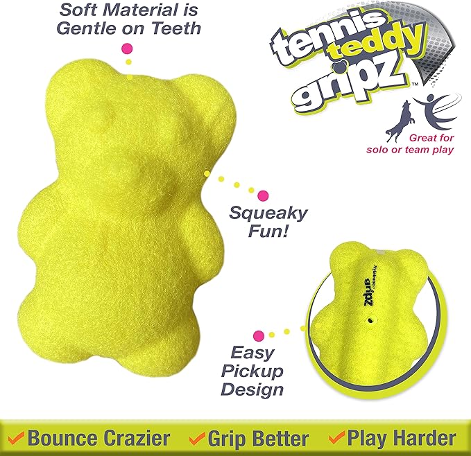 Nylabone Power Play Tennis Teddy Gripz Bear Dog Toy Teddy Medium (1 Count)