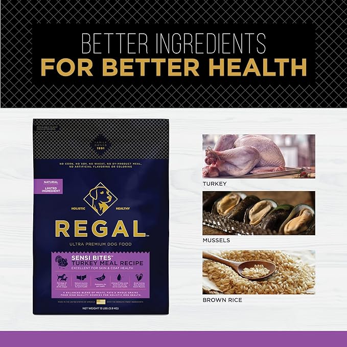 Adult Sensi Bites Turkey Meal Recipe - All Natural, Limited Ingredient Dry Dog Food for All Breeds and Sizes of All Life Stages - Made in The USA, 4 LB Bag