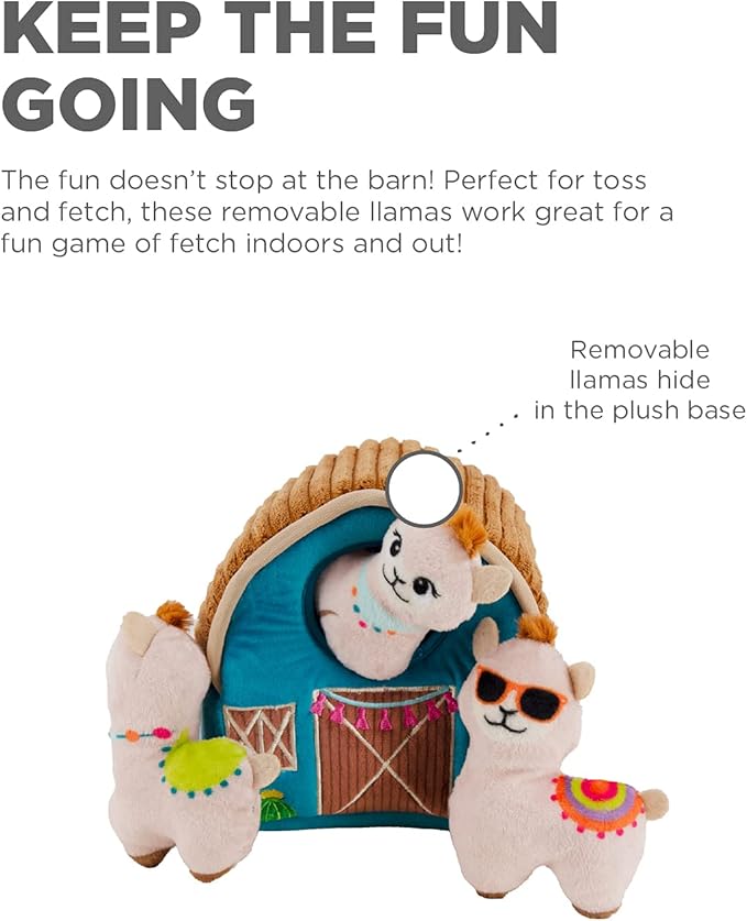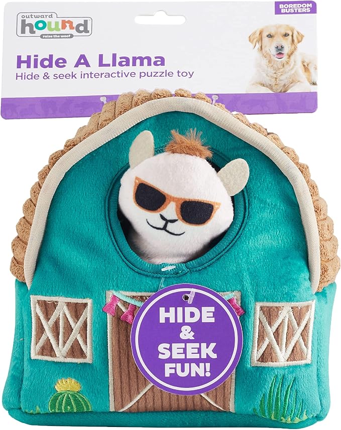• HIDE & SQUEAK FUN: The Hide A Llama dog puzzle is an easy way to get pups engaged for hours of fun! Just fill the barn with 3 stuffed squeaky llamas, toss it, and let your dog's natural hunting instincts kick in!