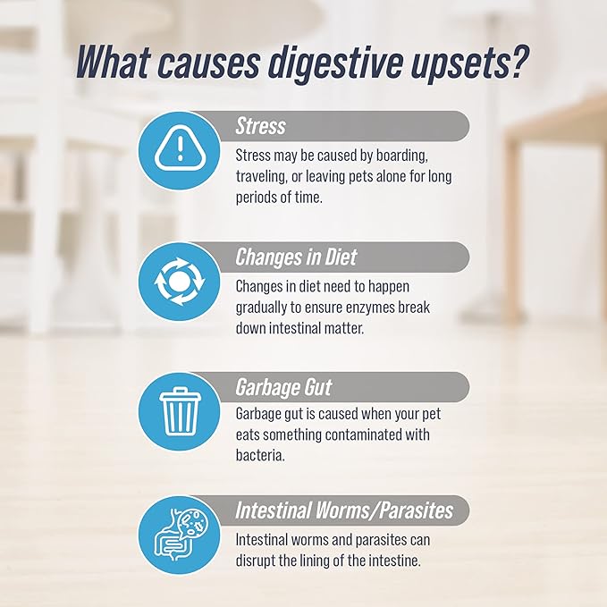 • PALATABLE FORMULA: This natural pet supplement not only supports your pet's bowel health with safe ingredients and quick results, it also goes down easy! Our pet digestive aid has a small, palatable portion for easy consumption.