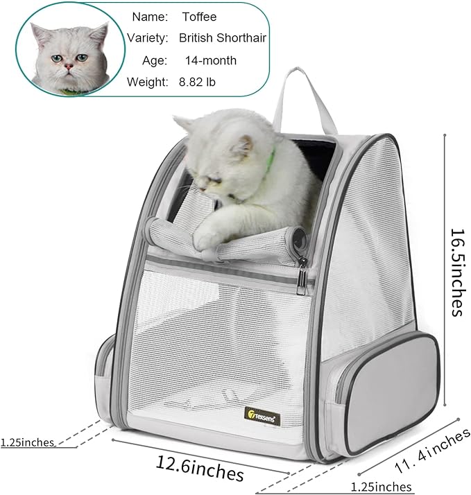 Texsens Pet Backpack Carrier for Small Cats Dogs | Ventilated Design, Safety Straps, Buckle Support, Collapsible | Designed for Travel, Hiking & Outdoor Use (Light Gray)