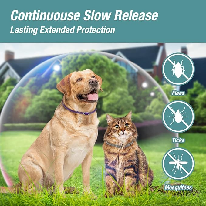 Flea &Tick Collar 2-Pack Purple, Protects from Biting Insects, Adjustable Fits Both Dogs&Cats, Built-in Plant Based Formula, Slow Release Lasting Protection, Waterproof