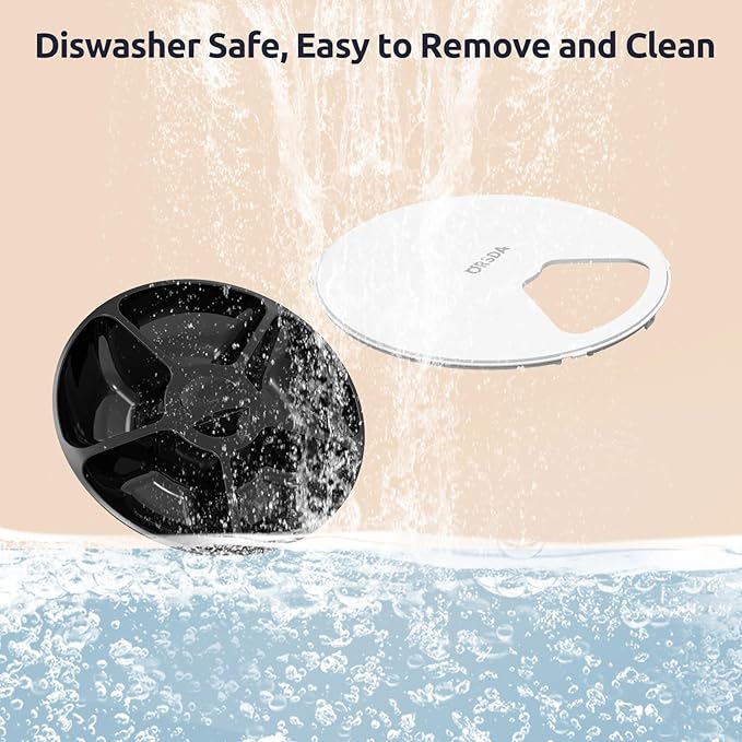 • 😸Easy To Clean & Water Proof Design- Both the cover and food bowl are removable and top-shelf dishwasher safe. Thanks to the sealed tray design, you have no needs to worry about short circuit if the water drop inside. The sealed lid and dispenser prevent pets prying paws to turn the tray and steal food to keep its hygiene and safety.