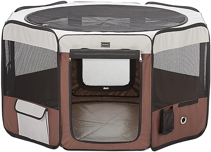 DONORO Dog Playpen 46" Portable Pet Play Pens for Small Medium Dogs, Cat Playpen Indoor/Outdoor with Carring Case, Removable Zipper Top and Bottom