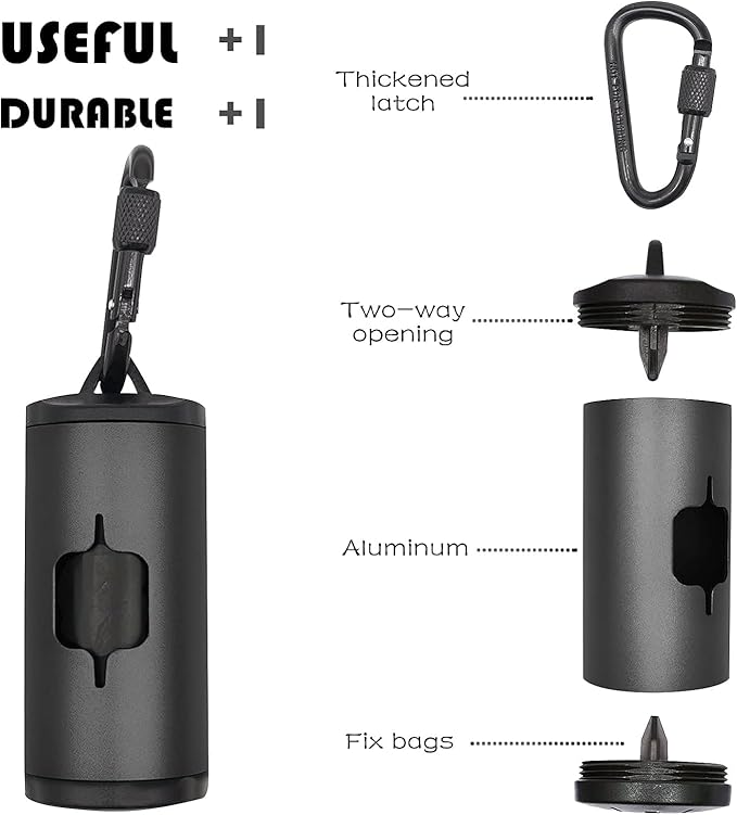 • Top Quality Material:aluminum alloy body with best coating craft, shiny color and scratch resistant, much more durable than most regular plastic dog poop bag dispensers.