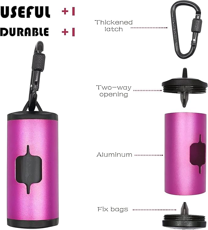 • Top Quality Material:aluminum alloy body with best coating craft, shiny color and scratch resistant, much more durable than most regular plastic dog poop bag dispensers.