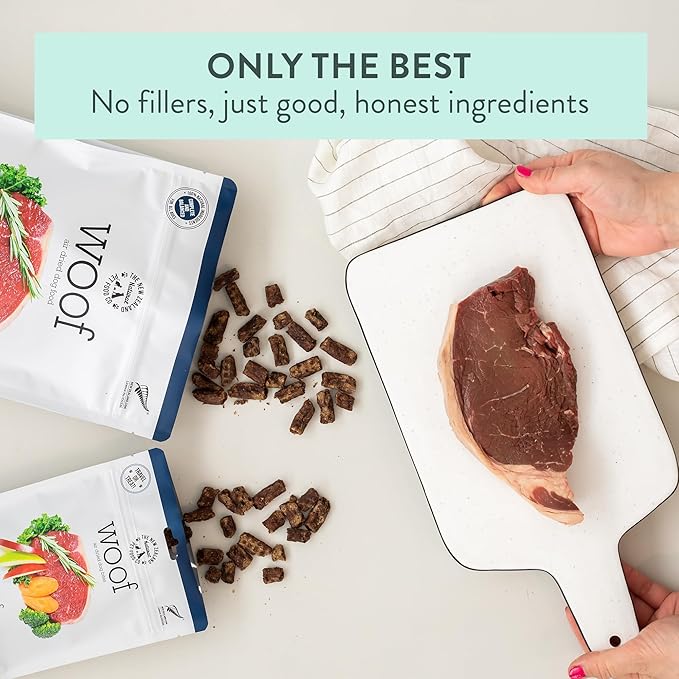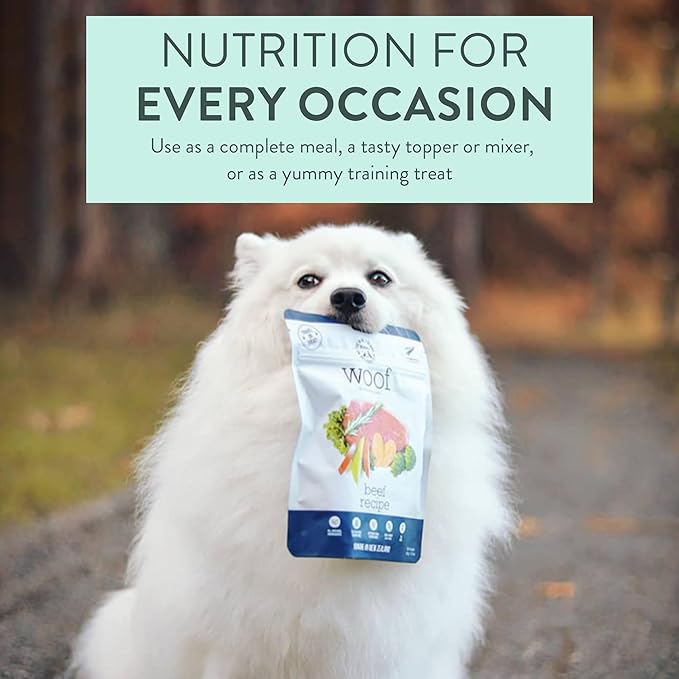 Woof - Air Dried Dog Food, Dog Food Toppers for Dry Food, High Protein, Natural Dog Food, Limited Ingredient Recipe Dry Dog Food, Beef, 3.5 oz