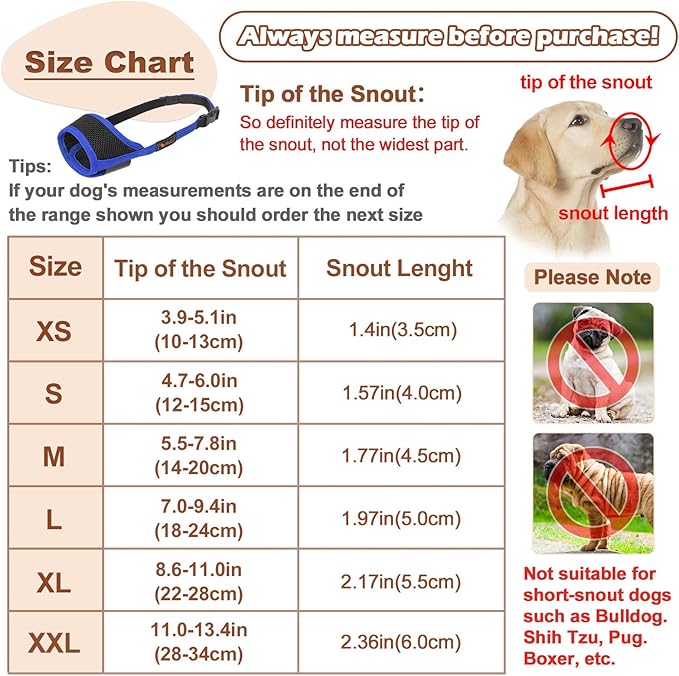 • šŸ¶ć€COMFORTABLE AND BREATHABLE怑: The dog muzzle practical and reliable is made with high-quality nylon material, soft breathable mesh and soft fabric. The interior of the muzzle has extra soft padding providing the ultimate comfort for your pet.