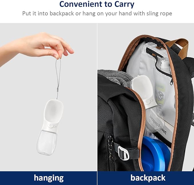 • [Convenient to Carry]: Enough capacity and compact water bottle design is great for your pet dog or cat when outdoor walking, running, hiking, traveling or playing, etc. You can put it into backpack or hang on your hand with sling rope, very easy to carry to anywhere you want.