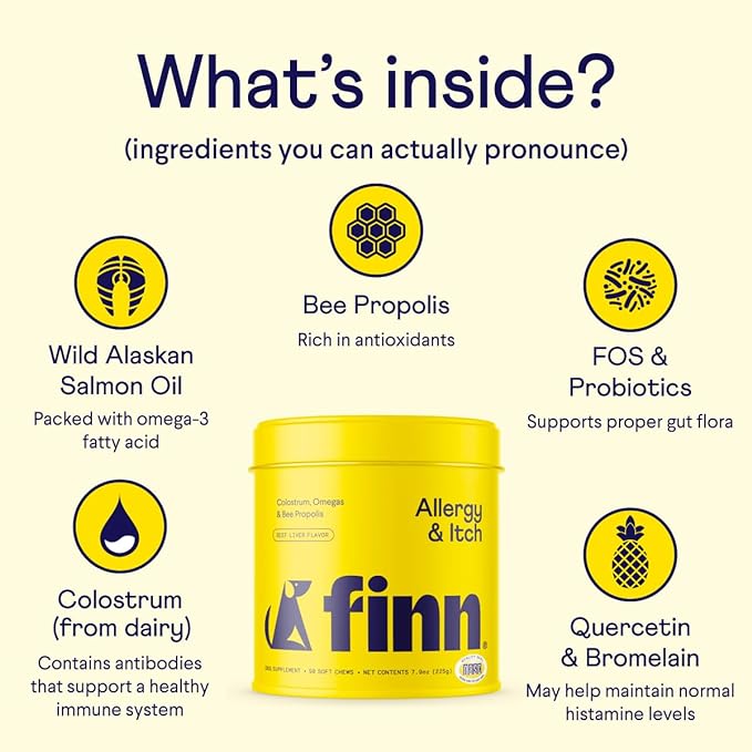 Finn Allergy & Itch for Dogs | Allergy, Itchy Skin & Immune Support w/Bee Propolis + Probiotics | 90 Soft Chews