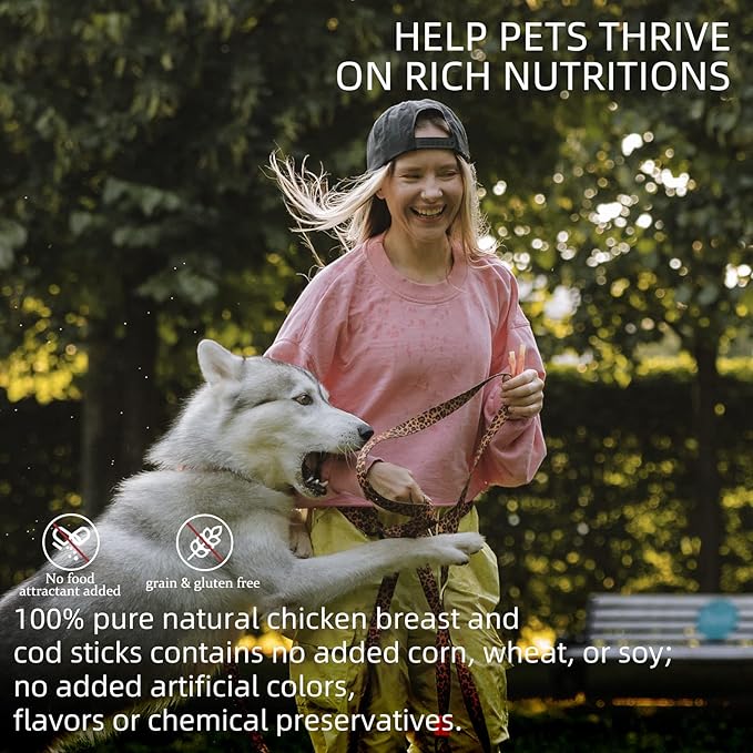 • 【NUTRITIOUS & HEALTHY DOG TREATS】 These Cod Sticks are 100% rawhide free alternative to traditional rawhide dog chews. Cod Fish treats are vitamins, minerals and low in fat that offer a natural source of Omega 3 & 6 fatty acids, support skin and coat health. No Wheat, corn, and soy-free recipes, and never, ever any artificial ingredients or preservatives.