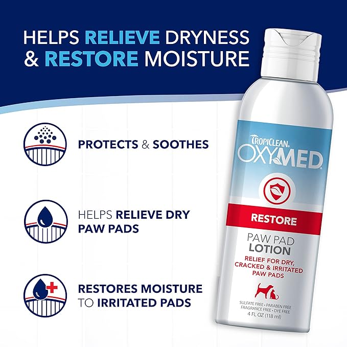 TropiClean Oxymed Paw Pad Cat & Dog Lotion for Dry Skin | Allover Skin Soother for Dogs & Cats | 4 oz